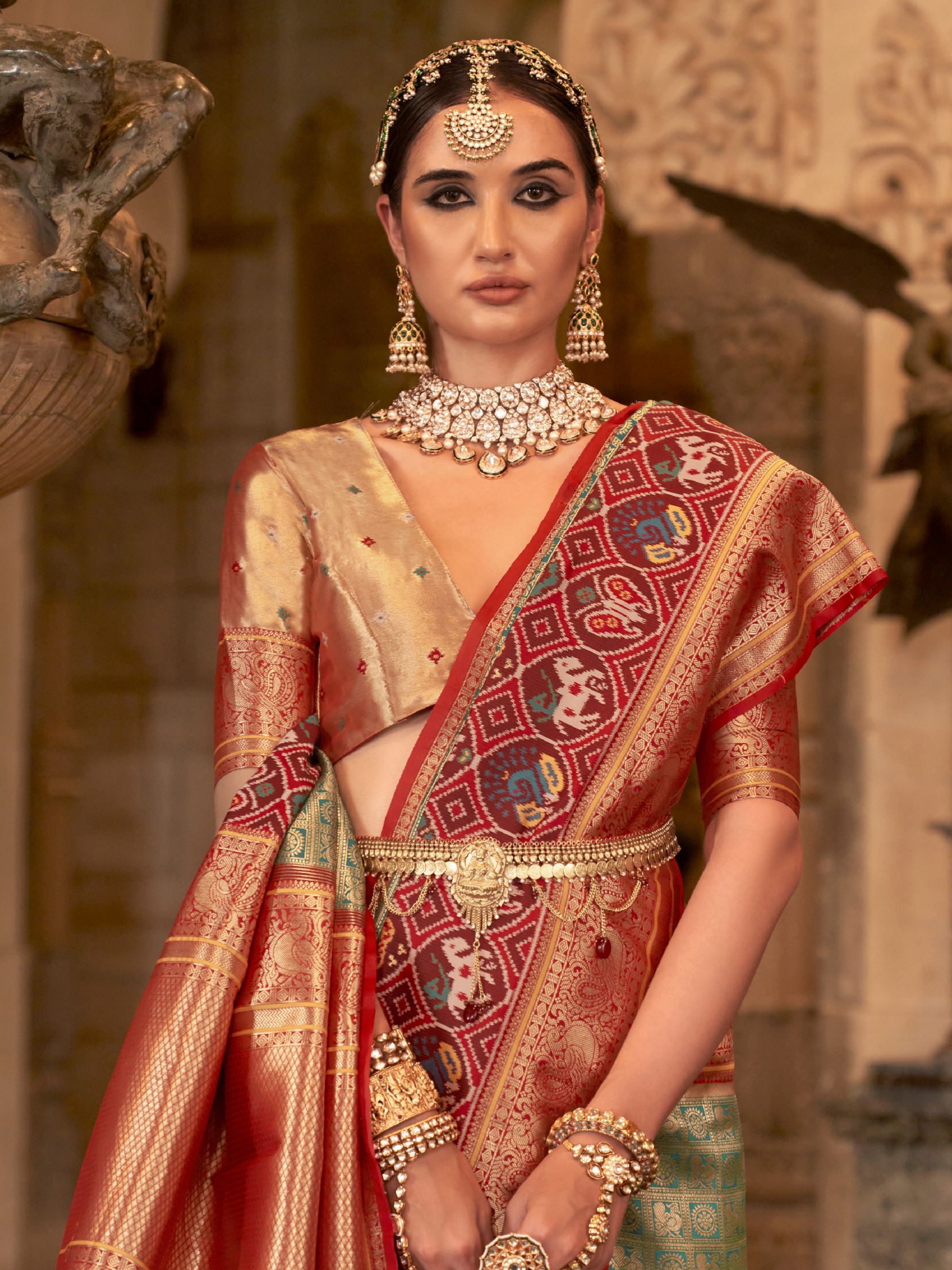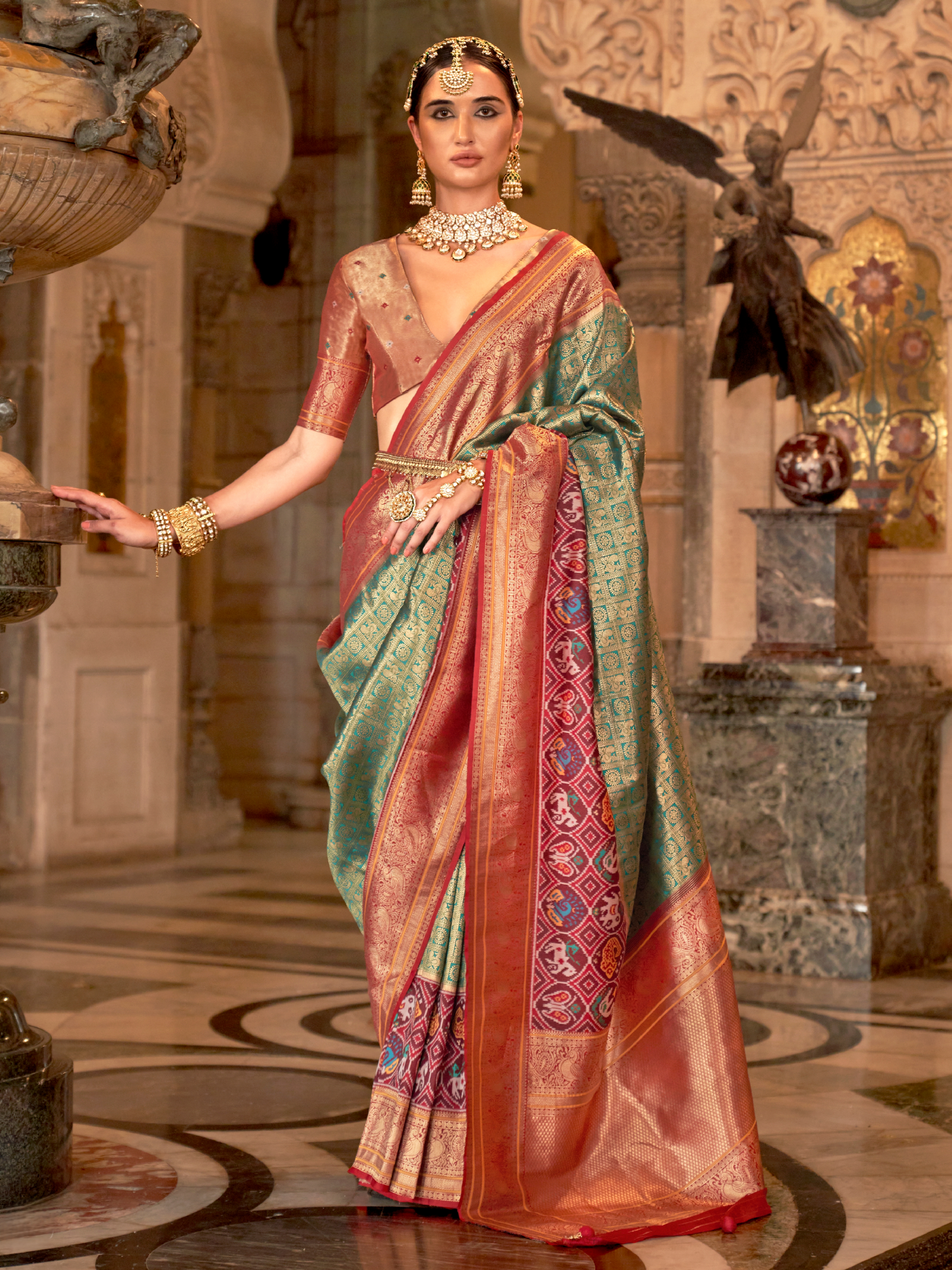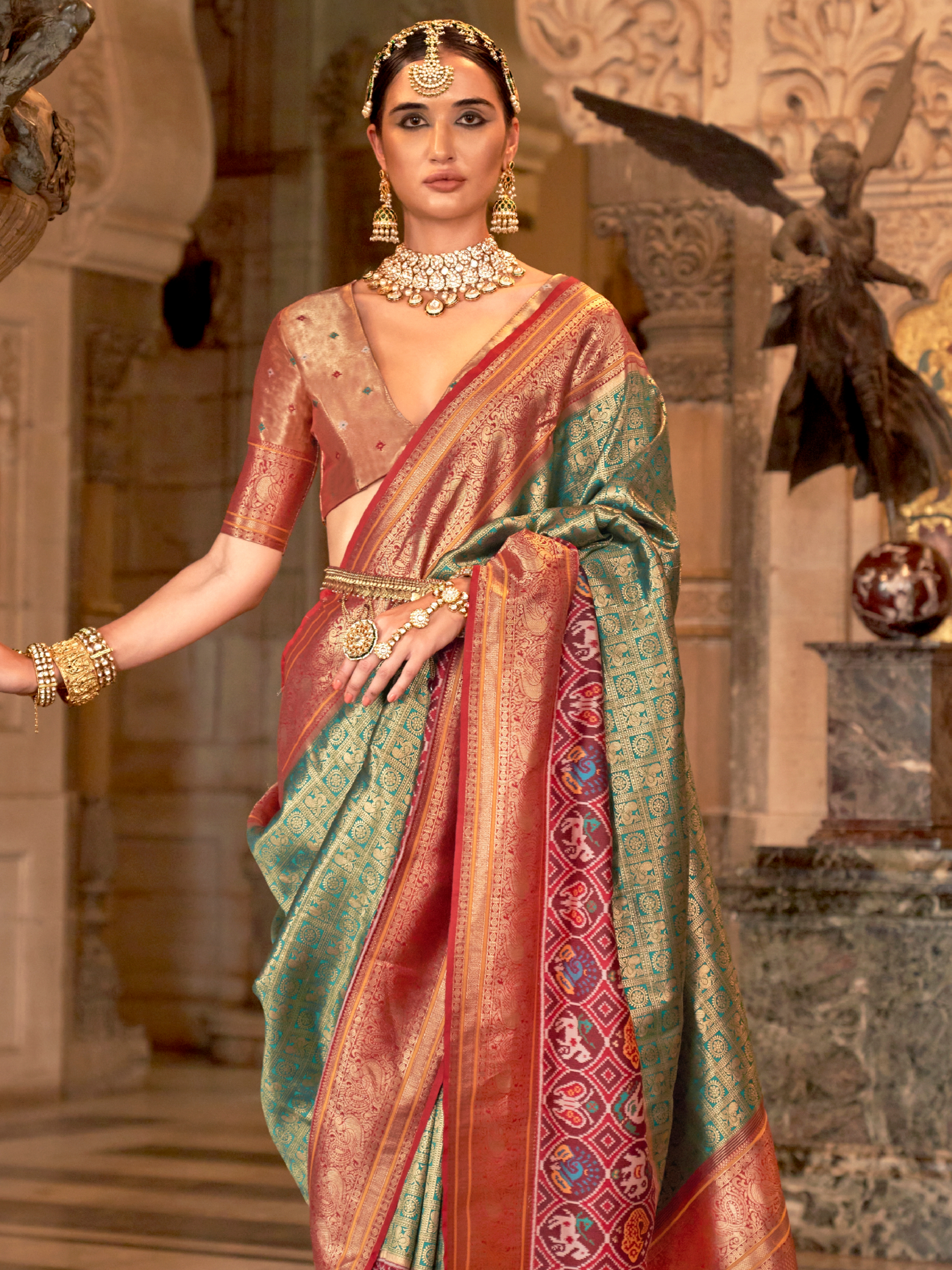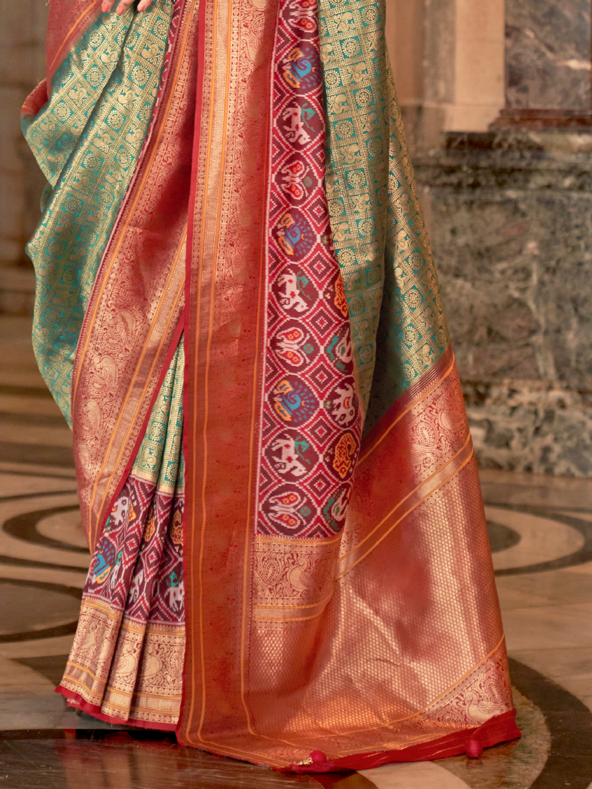 Angel Teal Woven Kanjivaram Patola Silk Saree