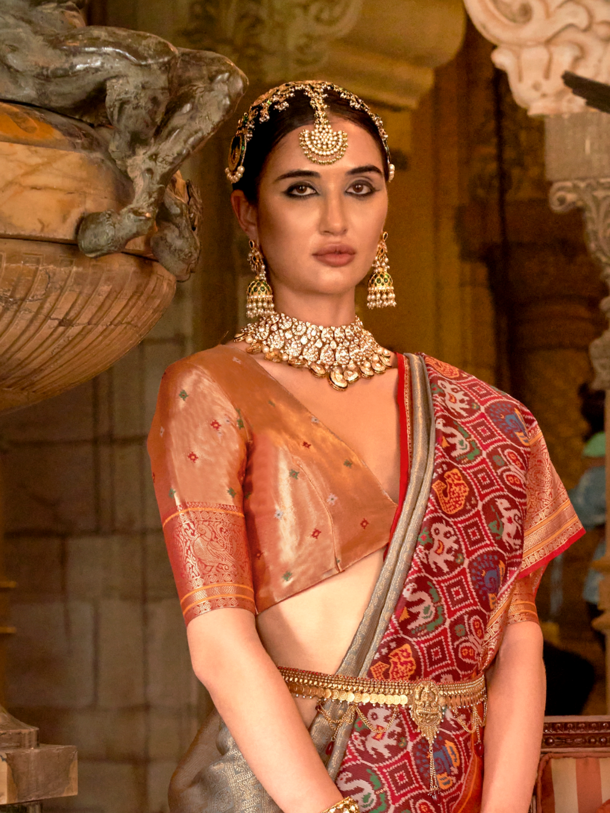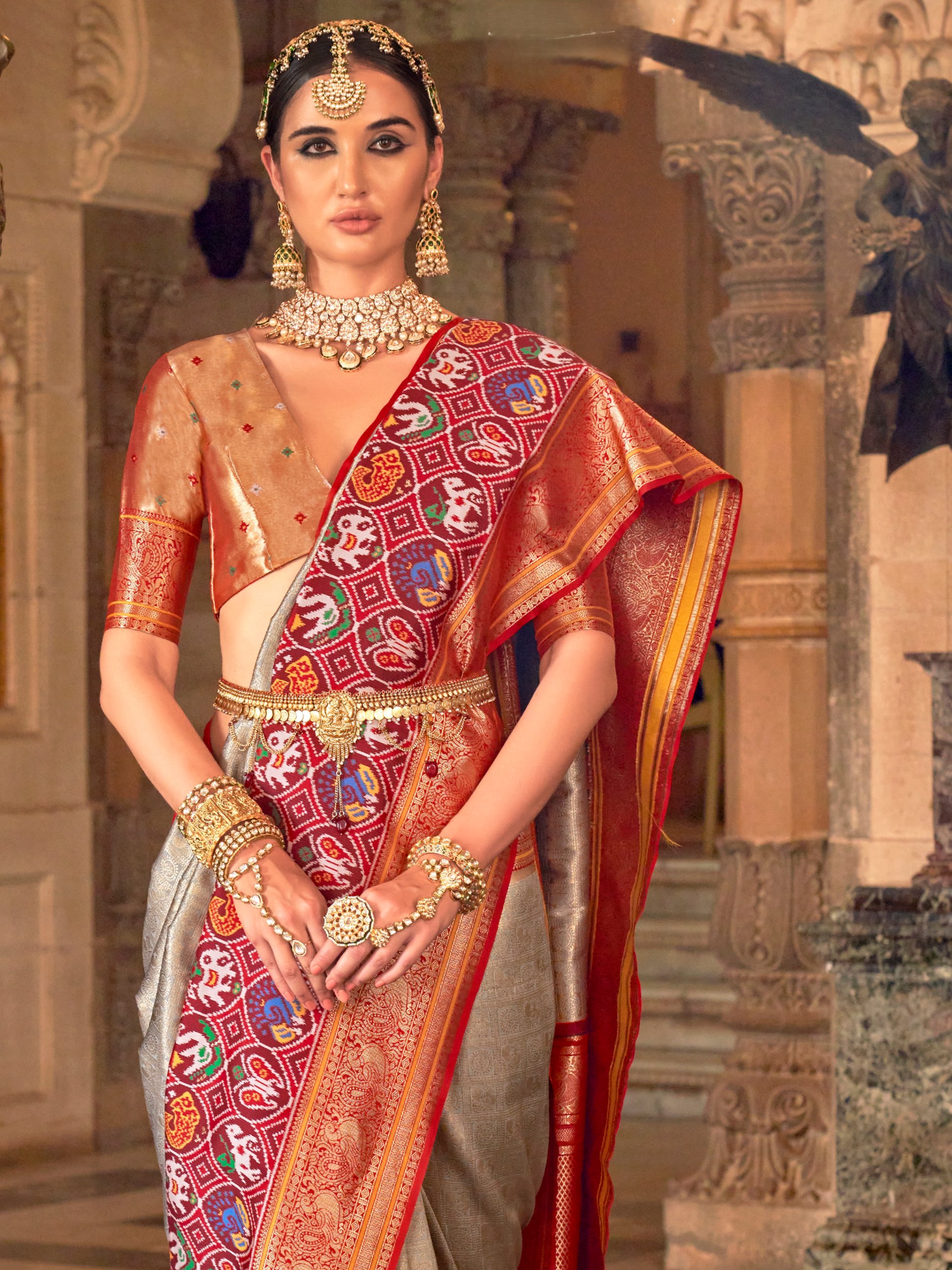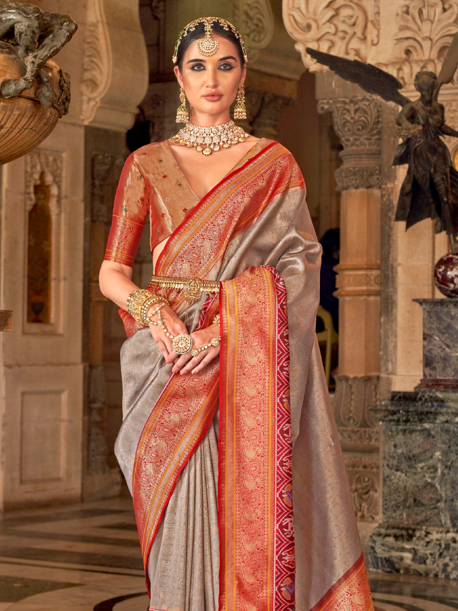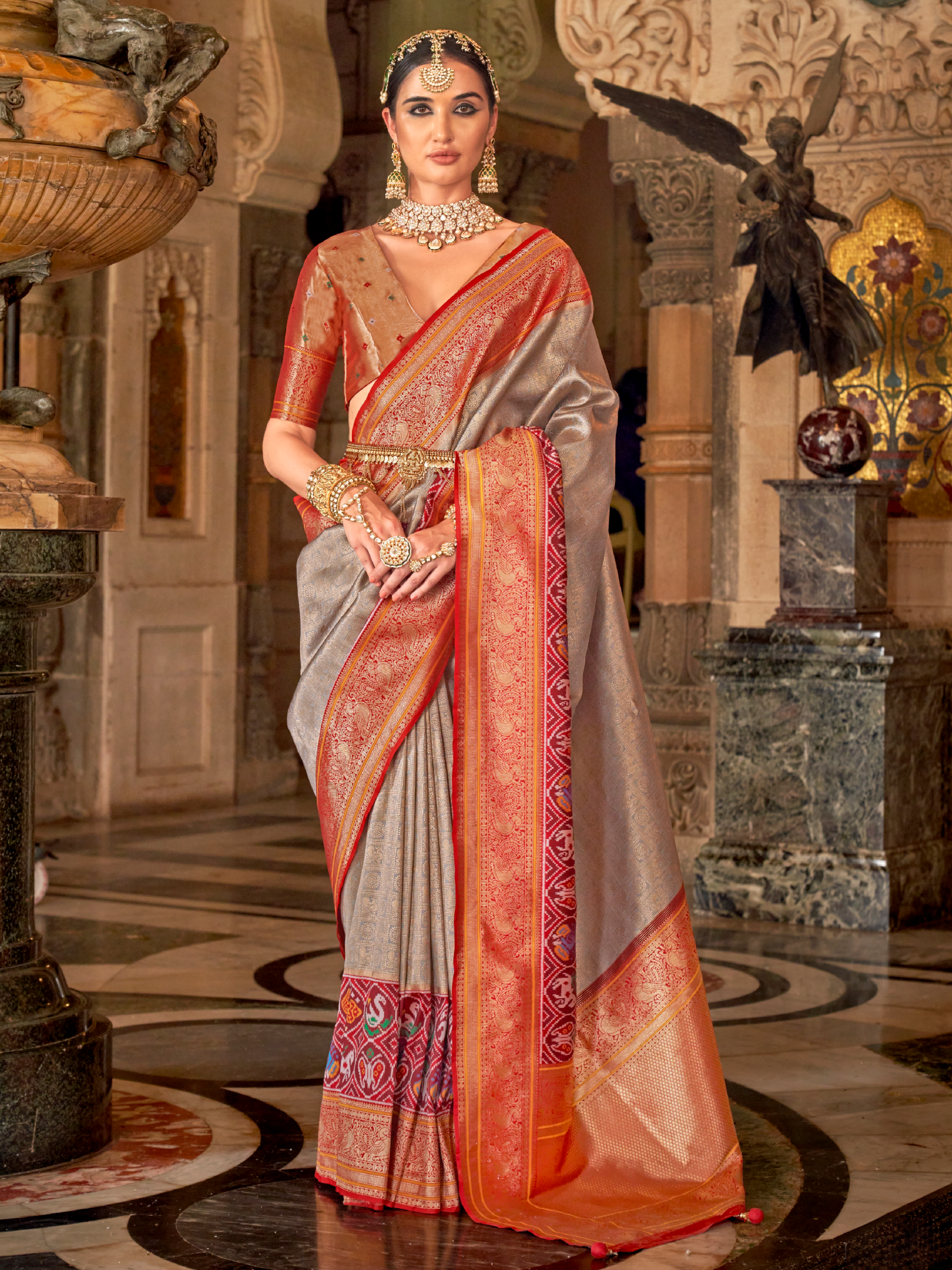 Coin Gray Woven Kanjivaram Patola Silk Saree