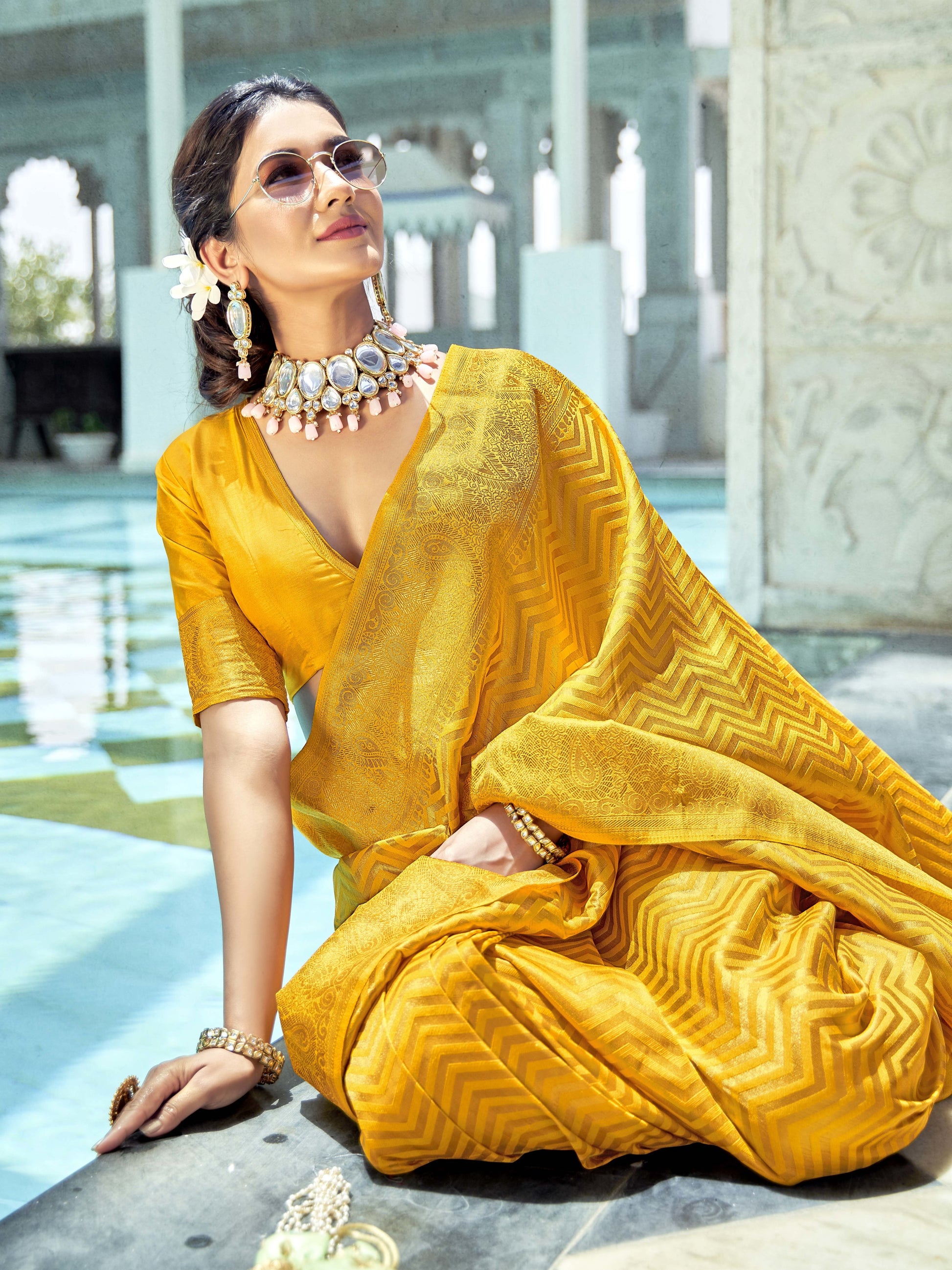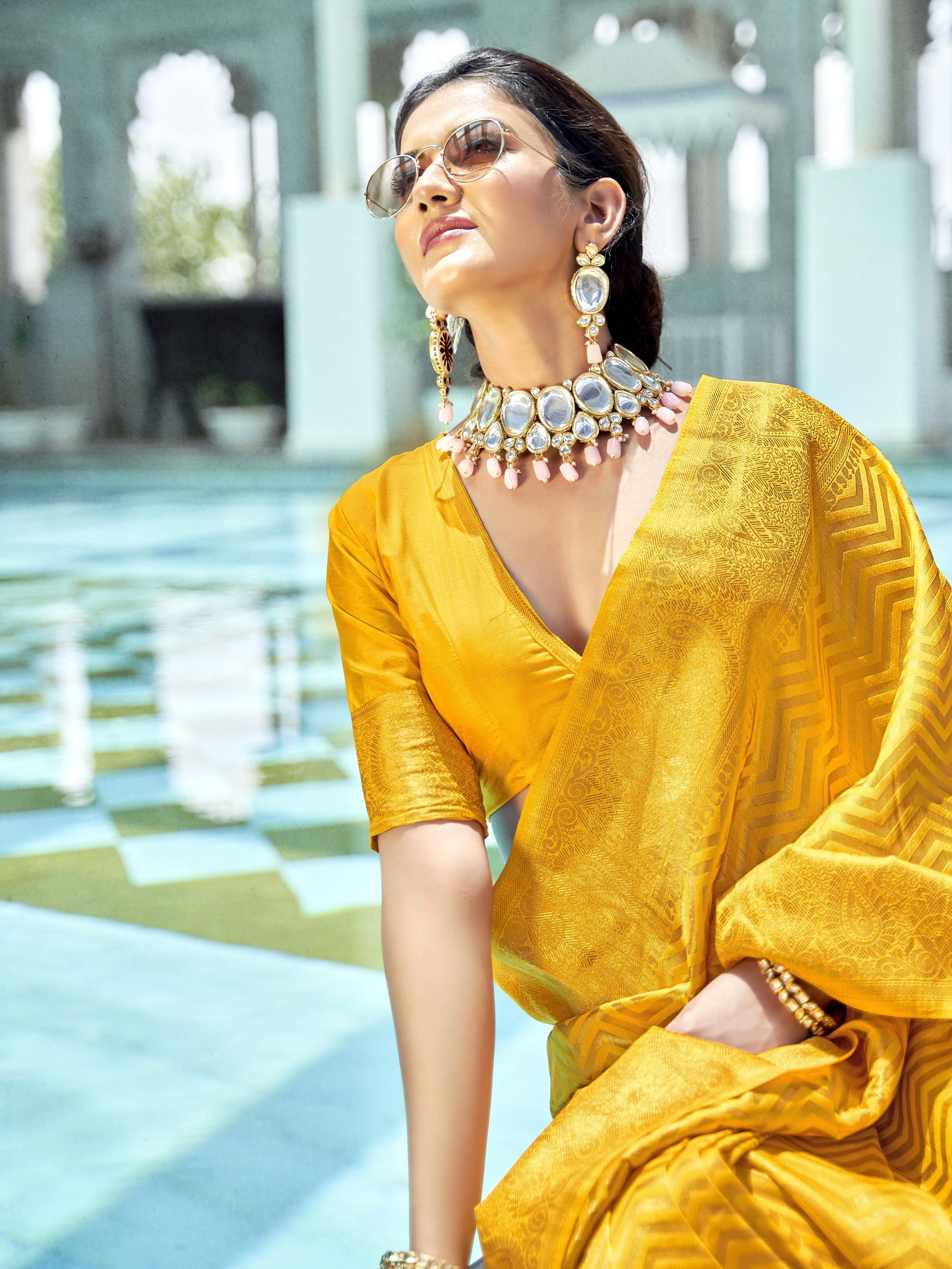 Whether you're attending a wedding or a religious ceremony, this Kanjivaram saree is an excellent choice. With its elegant design and festive charm, it's sure to turn heads.