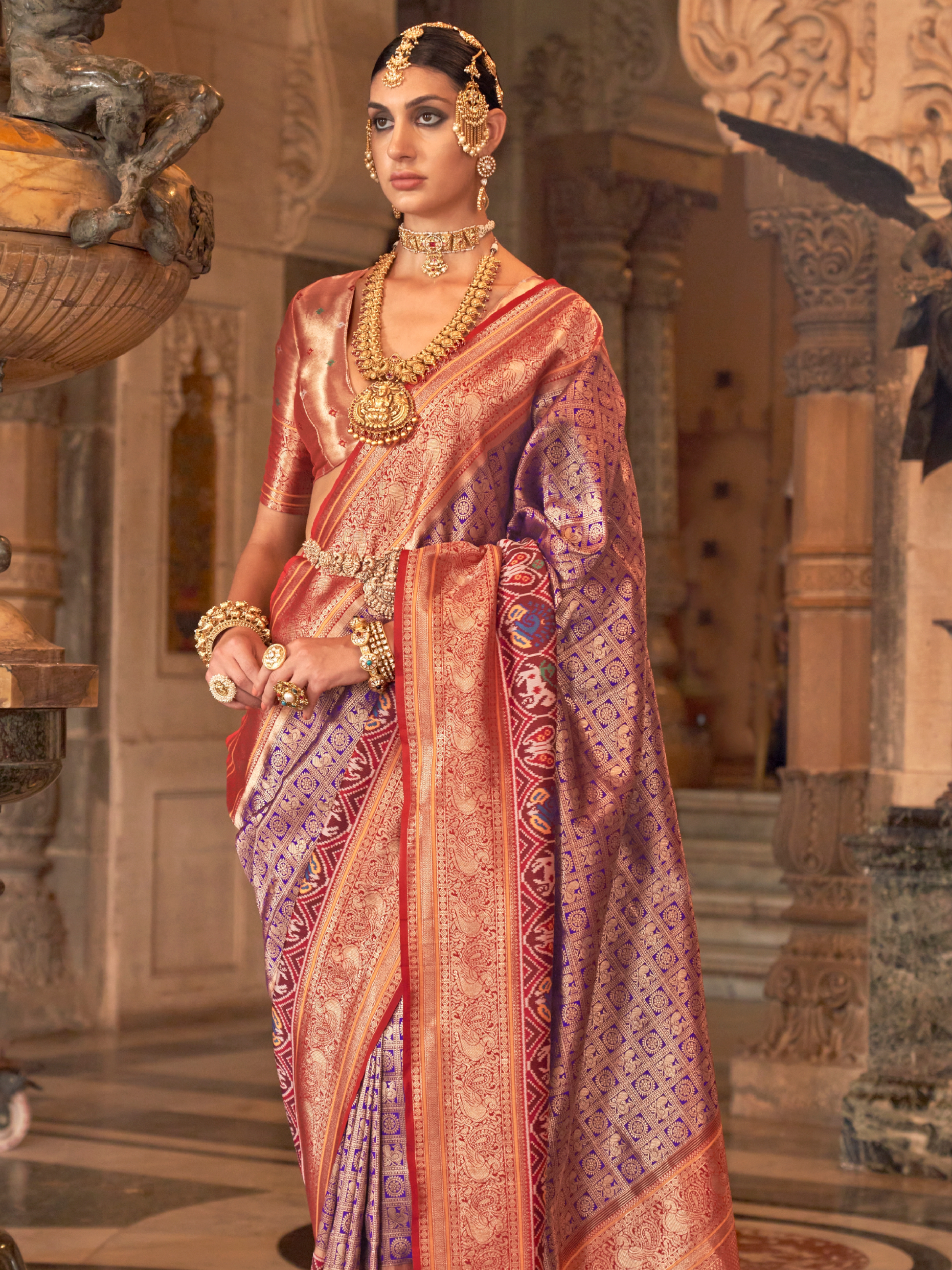 Royal Purple Woven Kanjivaram Patola Silk Saree