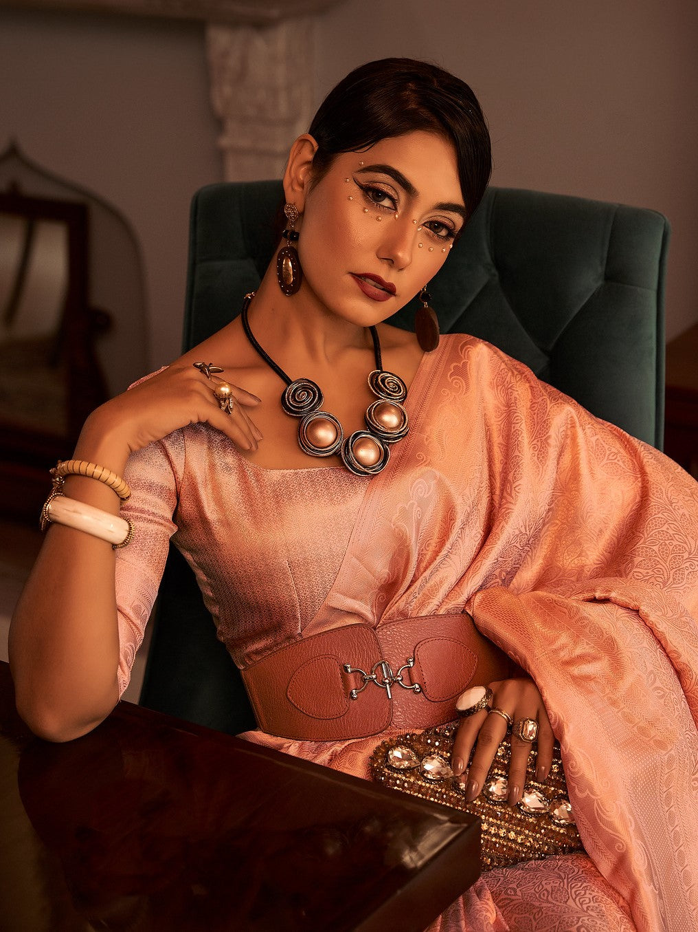 Whether you're attending a wedding or a religious ceremony, this Kanjivaram saree is an excellent choice. With its elegant design and festive charm, it's sure to turn heads.